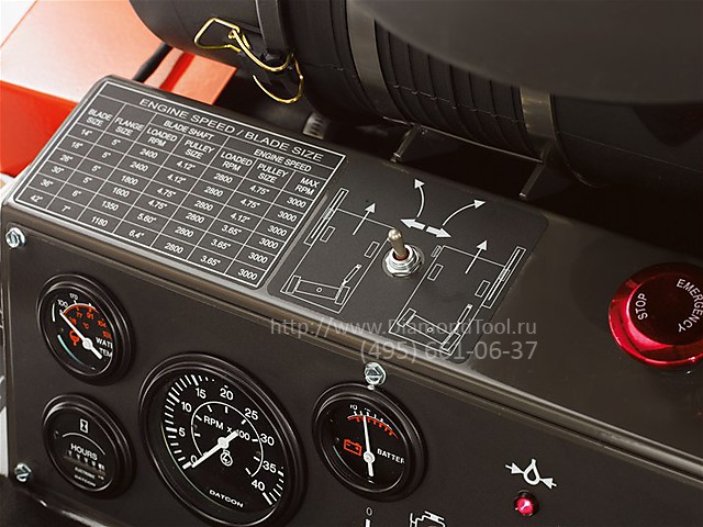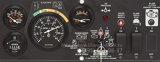 - Тахометр вала режущего диска позволяет оператору точно устанавливать нужную скорость вращения для выбранного размера диска.