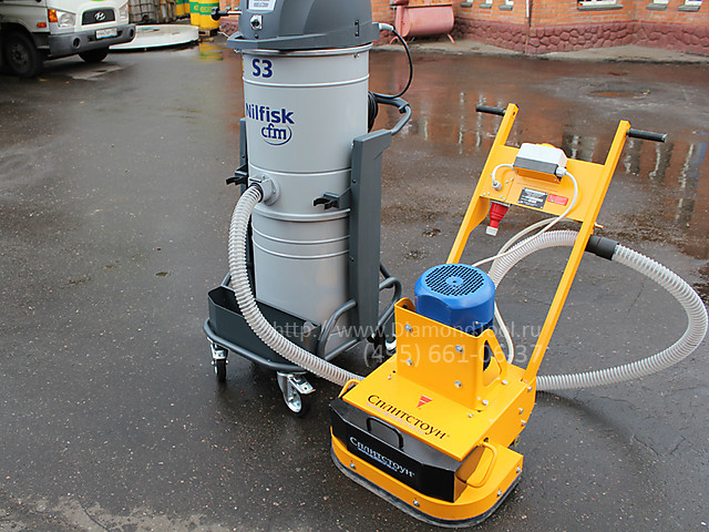Работа фрезеровальной и шлифовальной машины по бетону с промышленным пылесосом S3